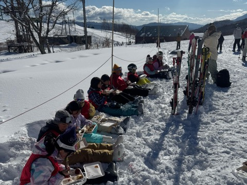 初心者クラスもリフトに慣れたようで余裕が見られます。初・中・上級クラスは「レストハウス エデン」でお弁当をいただいて、午後からのワッペンテストに臨みます。
