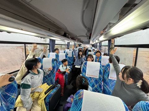 津・鈴鹿・四日市でお子様を乗せ、目指すは栂池高原まで。恵那峡でトイレ休憩してバスの中でゲームをして楽しみます。