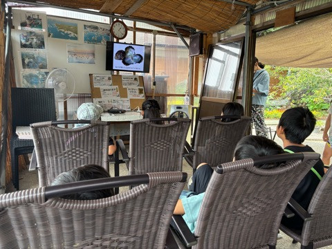 12時ごろに着き現地スタッフの方に導かれながら、まずは真珠養殖についてDVDで学びます。