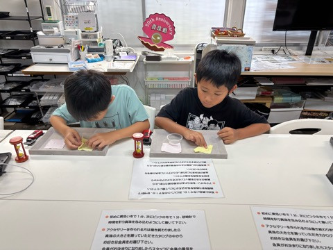 出来上がったアクセサリーは接着するまで24時間ほどかかるようですので、しばらくは袋に入れた状態にしておいてくださいね。またいろんな体験ができるといいですね。