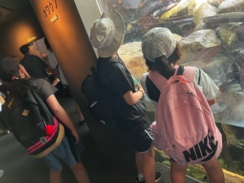 鉱石探しの後は、となりにある世界淡水魚水族館「アクアとと・ぎふ」で水族館見学ツアー。なぜかカワウソちゃんの ぬいぐるみを持っておりますね(^_^;)